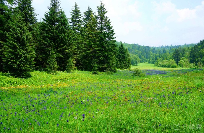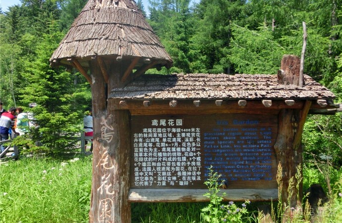 鸢尾花园位于长白山景区内,这里海拔约为1400米,生长着各种鸢尾花,花色多以篮紫色为主。鸢尾花园不大,整片草甸被密林环绕,这里挨着梯子河,植物生长环境良好。每年七月间这里的鸢尾花盛开,其中属于鸢尾科的溪荪花颜色幽蓝,花朵像蝴蝶展翅,在林间成片地铺将开去,景色十分动人。
