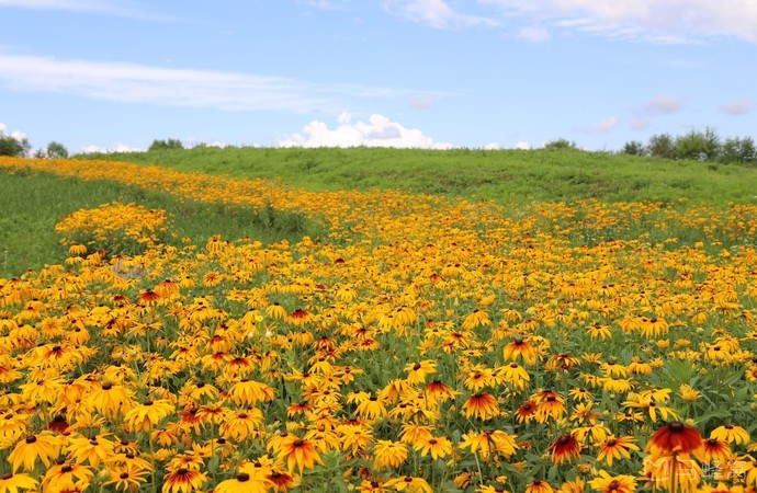 这里的植物十分神奇,每年7、8 两月无霜期,植物以极快的速度发芽、开花、结籽,然后进入休眠。这两个月,从海拔2000 米的山坡到长白山头,好似魔幻一般,整个高山上铺了厚厚一层花毯。高山花园除了花朵之外,还有许多珍稀动物。有人曾在这里看见过野生梅花鹿,捉到过十分珍贵和罕见极北蝰蛇。
